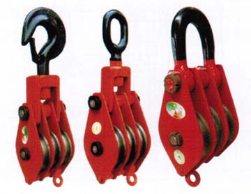 2、滑轮。滑轮是线路施工中最常见的工具之一,按其滚轮数目有单滑轮和多滑轮,按使用的作用有定滑轮和动滑轮。滑轮组是由定滑轮和动滑轮组合在一起以达到省力效果的。