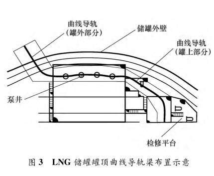 LNG 储罐罐顶曲轨电动葫芦的曲线导轨梁布置如图 3 所示。