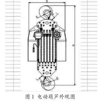 根据直径6.28m盾构机后配套设备常规重量(最重通常为带电机的1#或2# 拖35t左右),确定电动葫芦吨位为30t(满足最大设备重量吊装即可;市场上电动葫芦主要分为常规环链带钩头式和钢丝绳式,结合电动葫芦使用实用性及施工人员意见最终确定了采用环链钩头式的;电动葫芦链条长度有6m和8m两种规格,从经济性和使用效率上分析,根据常规后配套台车长度和常规吊装井口深度确定后配套台车下井或出井时所需打斜的角度,来确定链条长度6m即可满足施工要求;最后对电动葫芦电线进行加长,电线场地大于井口深度和常规电箱到井边距离之和且有足够余量,并有专用线盒保护,这样电动葫芦参数选型就可以确定下来了。如图1所示: