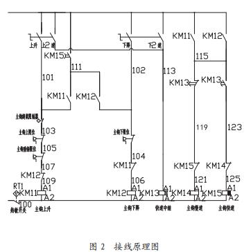 2)制动器交流电源直接与电机接线柱连接,在不受直流侧开关控制的情况下,只受交流侧开关控制。电动葫芦无论在高速、低速、上升、下降、停止的各个状态,电磁制动器与电动机同时得电、同时失电。在没有直流侧开关控制实现快速制动的情况下,会出现在低速切换至高速的过程中,电磁制动器瞬间上闸,若此时制动器打开时间早于电动机得电时间,则造成高速电动机不能及时得电。相当于重物吊起后,制动器打开,而电动机未运转,产生的扭矩为零,导致电动机随重物作用反向旋转,从而造成溜钩。