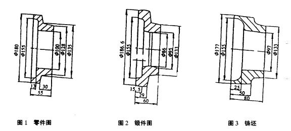 3、选择锻造比,按照锻件图设计铸坯,锻造比的选择,以模具充满、产生均匀飞边、不生产折叠为原则。经过试验确定锻造比为1.5左右时,铸锻件没有不充满现象,而且锻造毛边均匀,无折叠现象,所设计的铸坯如图3.