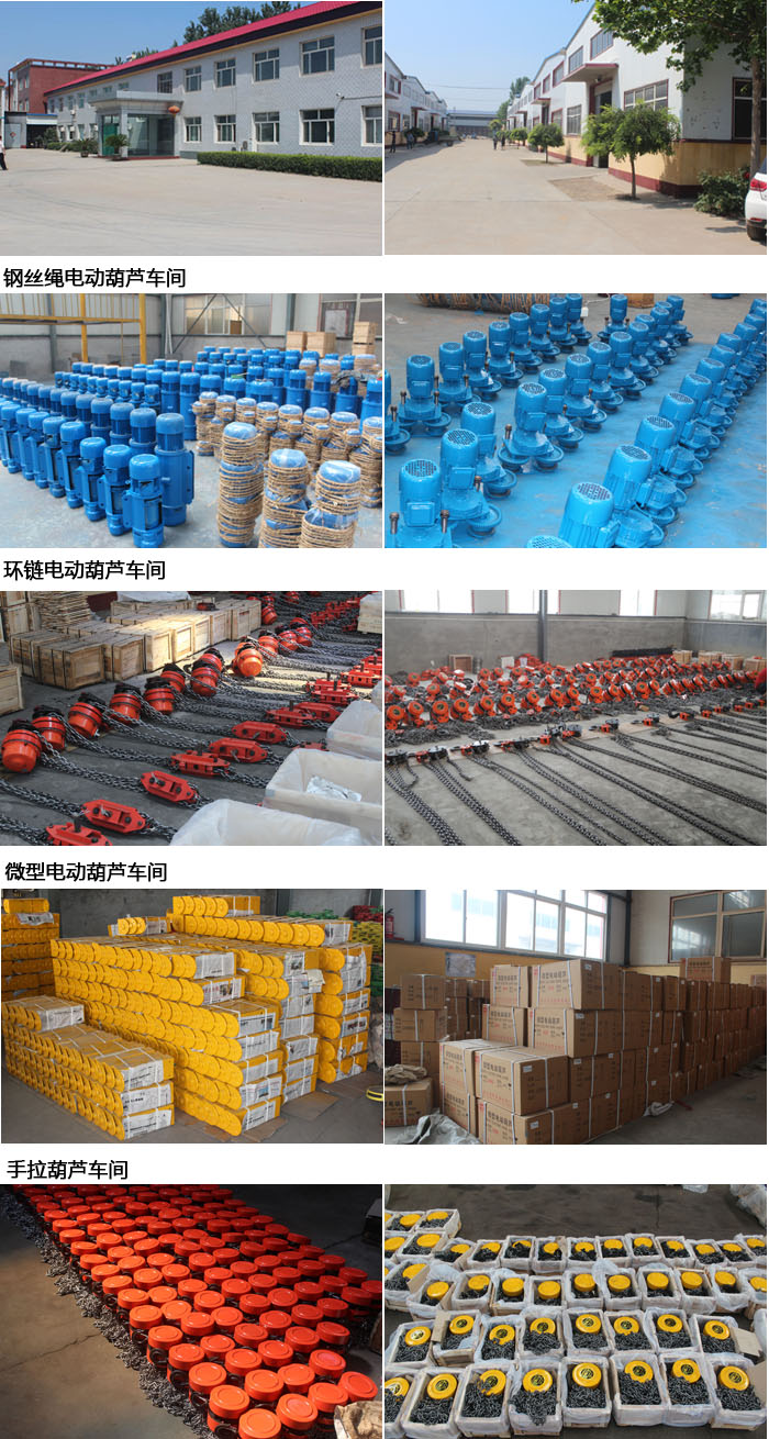 公司每年都会参加郑州、北京、上海、广州等各大城市的展会,将我公司的产品不仅推广到全国,更是推广到国外,我厂实力雄厚,技术先进,专业打造的各种型号规格的起重葫芦均经过严格的检验,让顾客买到放心的产品,以上图片均为我厂实景图,版权所有请勿转载,如果有客户想参观工厂,我们随时欢迎您的到来!!