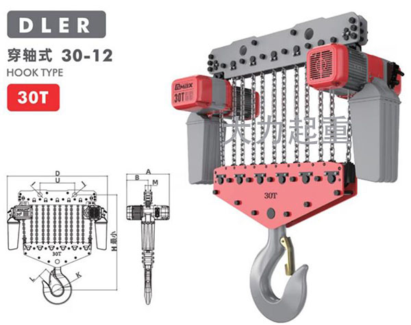 产品名称: 30吨DLER环链电动葫芦穿轴式