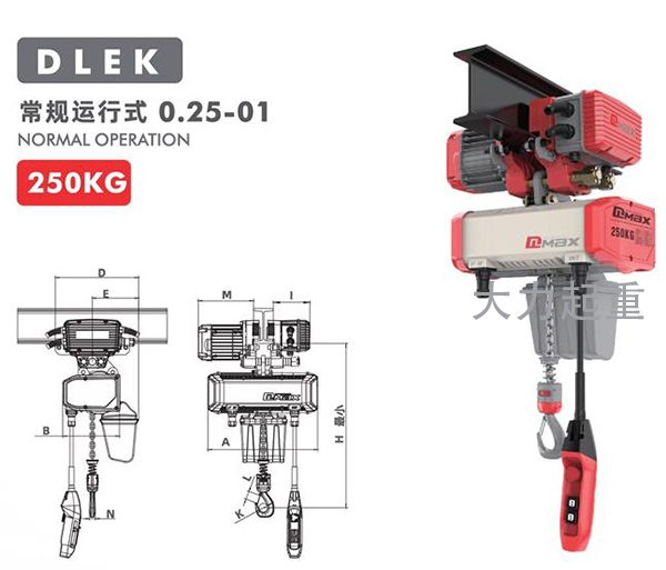 产品名称: 0.25吨DLEK环链电动葫芦运行式