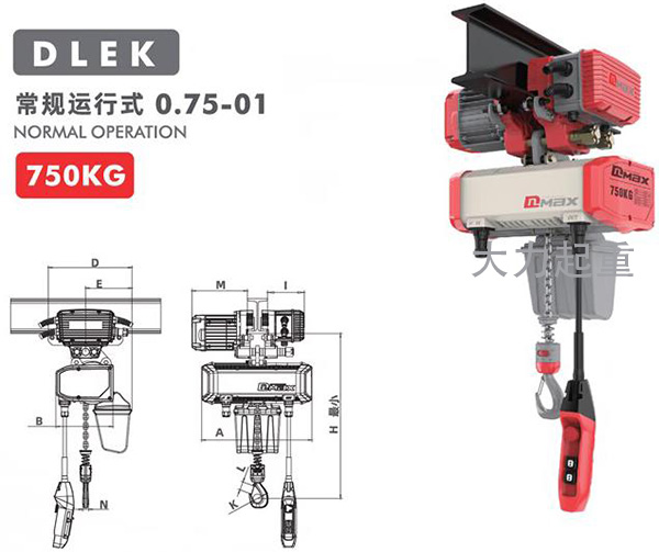 0.75吨DLEK环链电动葫芦运行式产品参数: