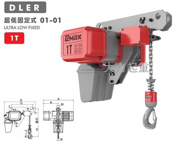 1吨DLER超低式环链电动葫芦固定式