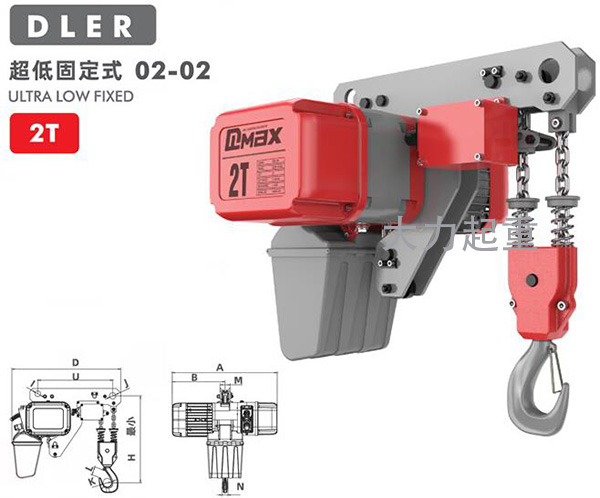2吨DLER超低式环链电动葫芦固定式产品参数: