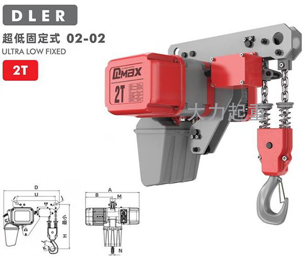 2吨DLER双链条超低式环链电动葫芦固定式产品参数:
