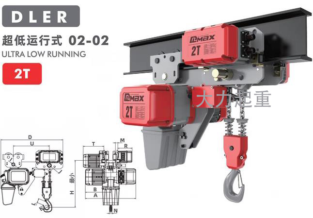 2吨DLER双链条超低式环链电动葫芦运行式