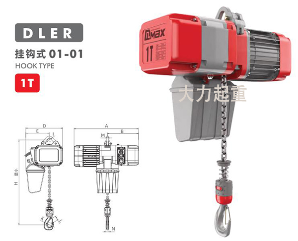 1吨DLER环链电动葫芦挂钩式产品参数: