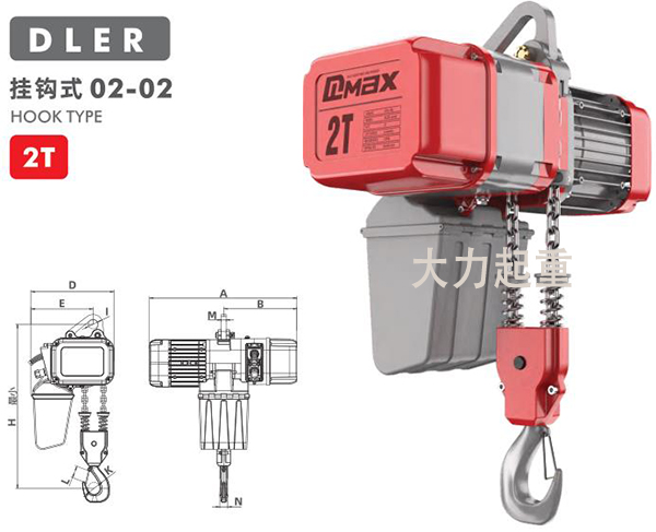 2吨DLER环链电动葫芦挂钩式产品参数: