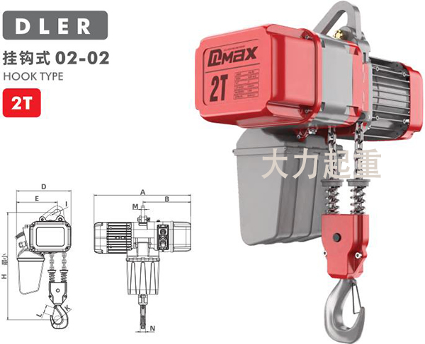 2吨双链条DLER环链电动葫芦挂钩式产品参数: