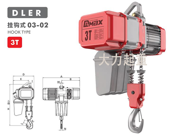 3吨双链条DLER环链电动葫芦挂钩式产品参数: