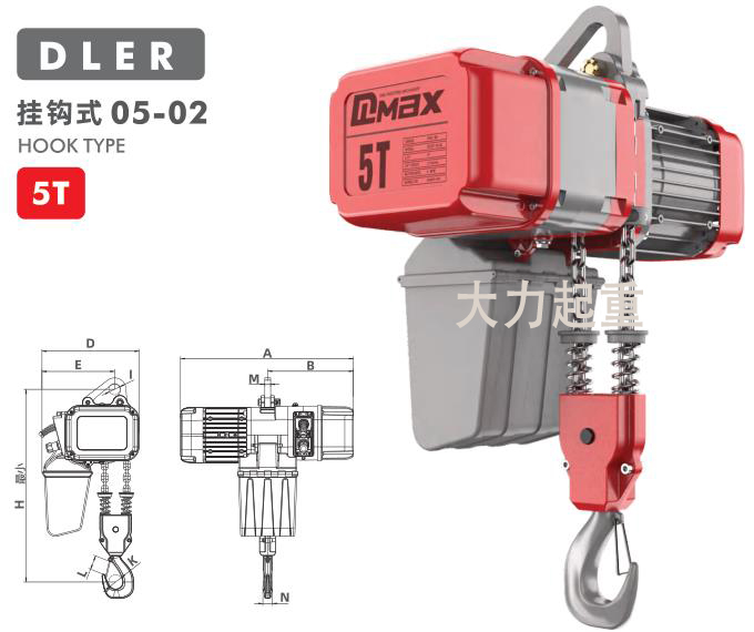 5吨DLER环链电动葫芦挂钩式产品参数: