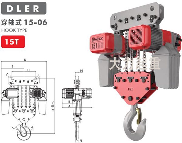 15吨DLER环链电动葫芦穿轴式产品参数: