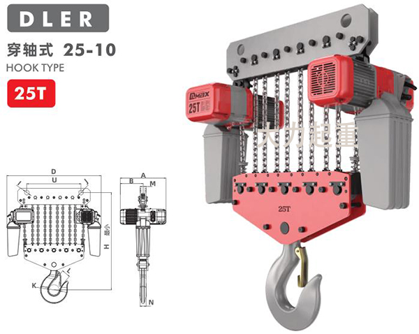 25吨DLER环链电动葫芦穿轴式产品参数: